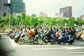 Everyone drives a motorcycle or motor scooter in Taipei.